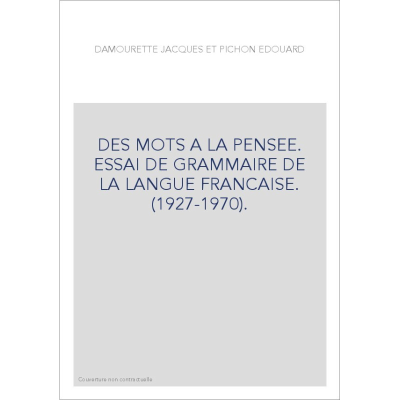 DES MOTS A LA PENSEE. ESSAI DE GRAMMAIRE DE LA LANGUE FRANCAISE. (1927-1970).