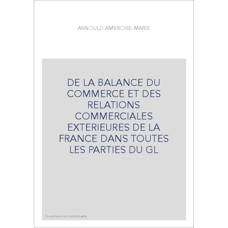 DE LA BALANCE DU COMMERCE ET DES RELATIONS COMMERCIALES EXTERIEURES DE LA FRANCE DANS TOUTES LES PARTIES DU GL