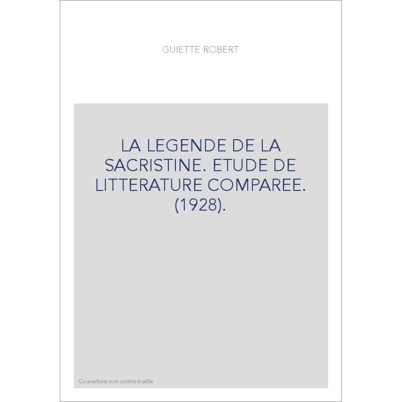 LA LEGENDE DE LA SACRISTINE. ETUDE DE LITTERATURE COMPAREE. (1928).