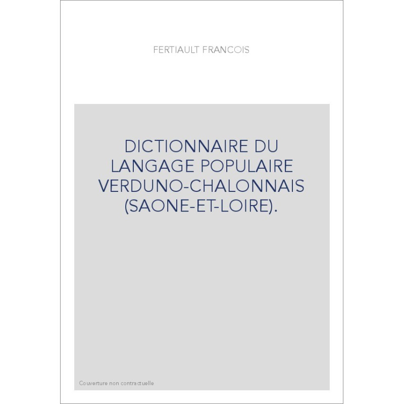 DICTIONNAIRE DU LANGAGE POPULAIRE VERDUNO-CHALONNAIS (SAONE-ET-LOIRE).