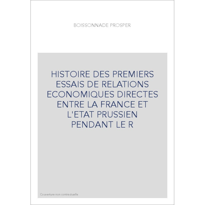 HISTOIRE DES PREMIERS ESSAIS DE RELATIONS ECONOMIQUES DIRECTES ENTRE LA FRANCE ET L'ETAT PRUSSIEN PENDANT LE R