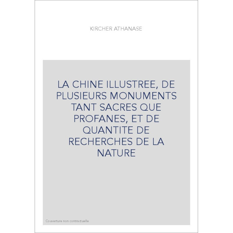 LA CHINE ILLUSTREE, DE PLUSIEURS MONUMENTS TANT SACRES QUE PROFANES, ET DE QUANTITE DE RECHERCHES DE LA NATURE