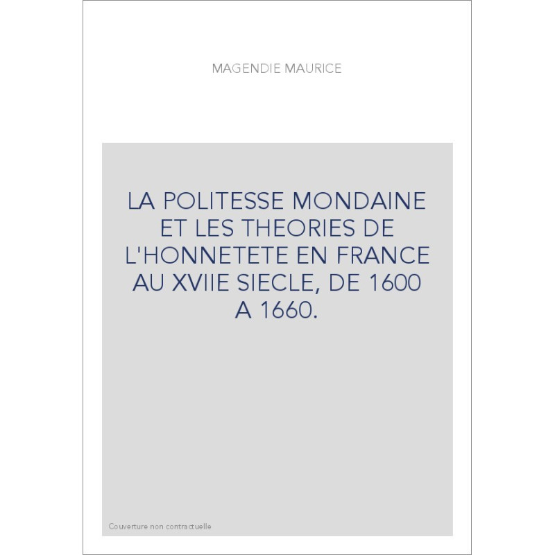LA POLITESSE MONDAINE ET LES THEORIES DE L'HONNETETE EN FRANCE AU XVIIE SIECLE, DE 1600 A 1660. Agrandir