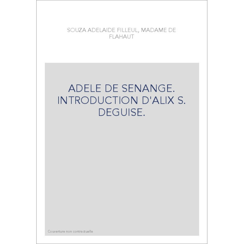 ADELE DE SENANGE. INTRODUCTION D'ALIX S. DEGUISE.