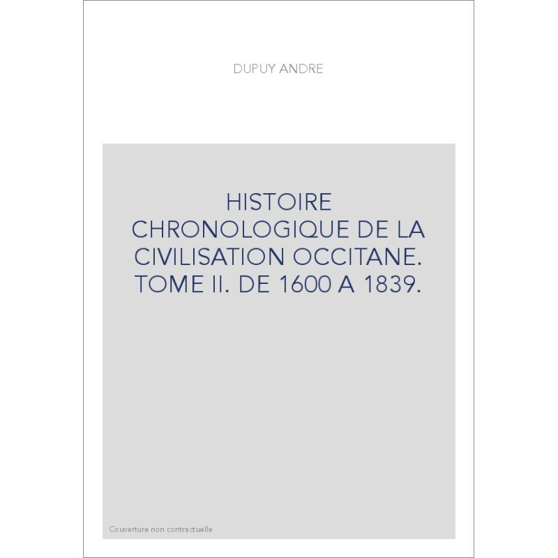 HISTOIRE CHRONOLOGIQUE DE LA CIVILISATION OCCITANE. TOME II. DE 1600 A 1839.