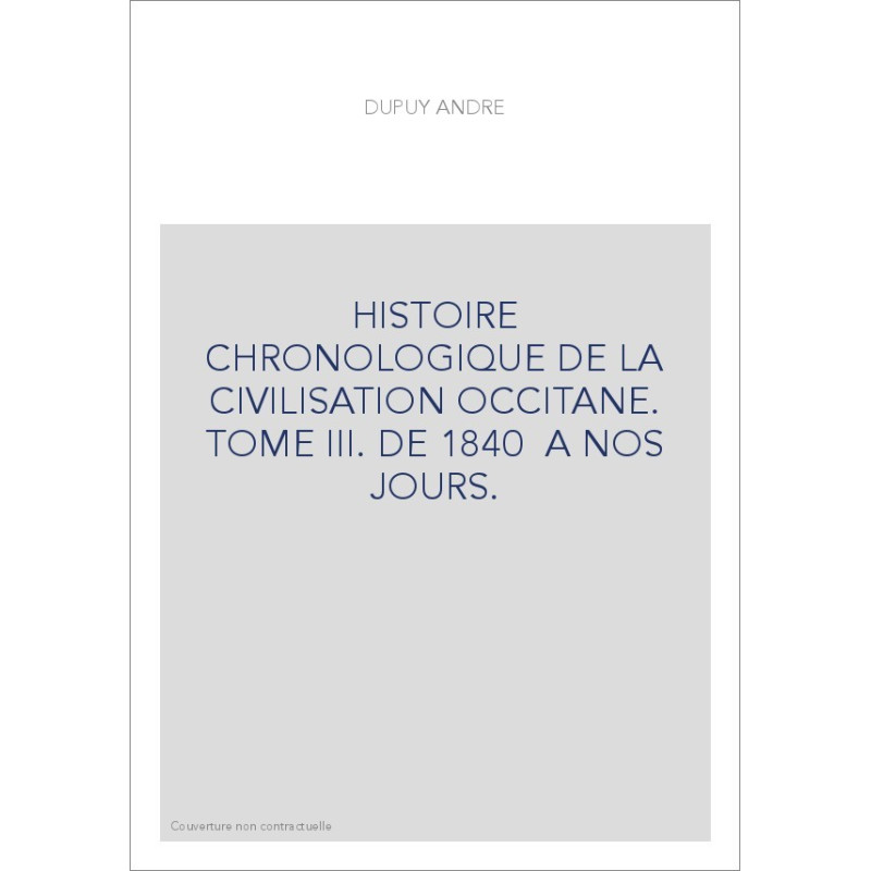 HISTOIRE CHRONOLOGIQUE DE LA CIVILISATION OCCITANE. TOME III. DE 1840  A NOS JOURS. Agrandir