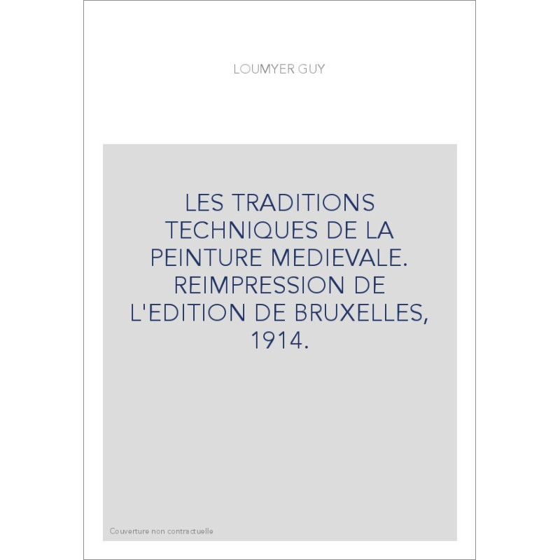 LES TRADITIONS TECHNIQUES DE LA PEINTURE MEDIEVALE. REIMPRESSION DE L'EDITION DE BRUXELLES, 1914.