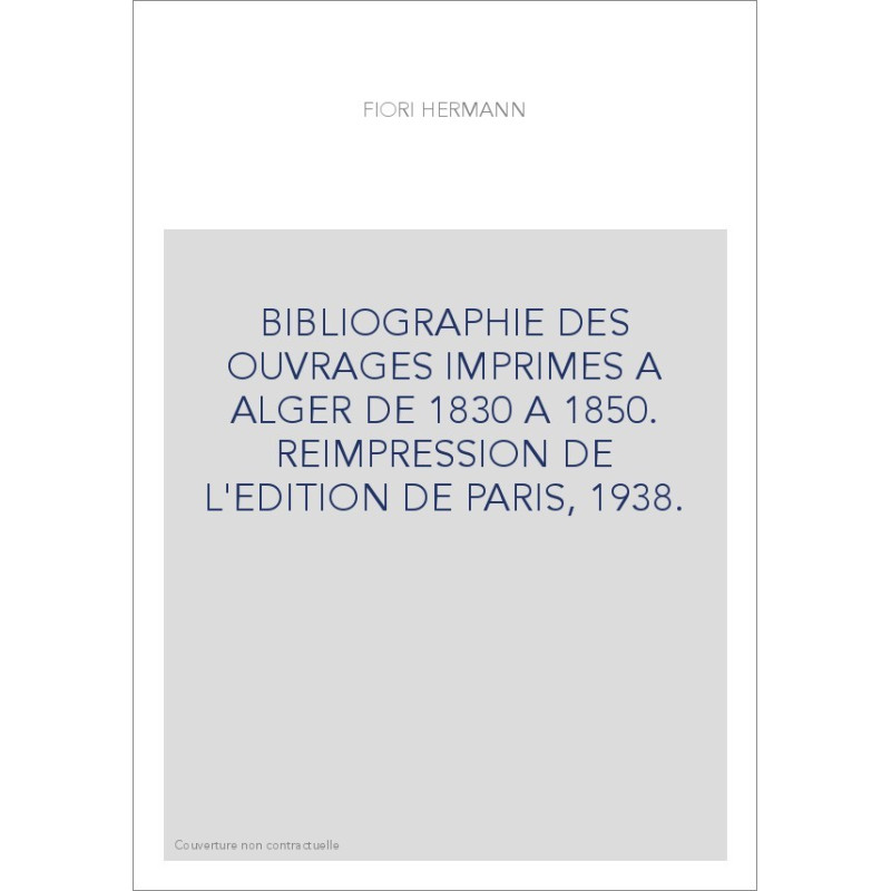 BIBLIOGRAPHIE DES OUVRAGES IMPRIMES A ALGER DE 1830 A 1850. REIMPRESSION DE L'EDITION DE PARIS, 1938.