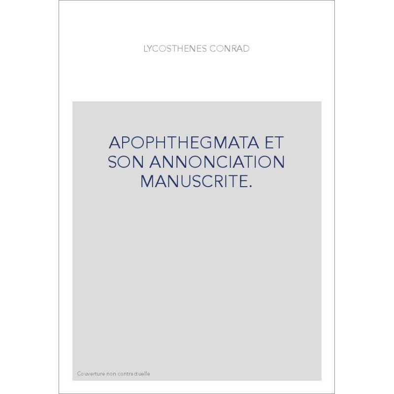 APOPHTHEGMATA ET SON ANNONCIATION MANUSCRITE.
