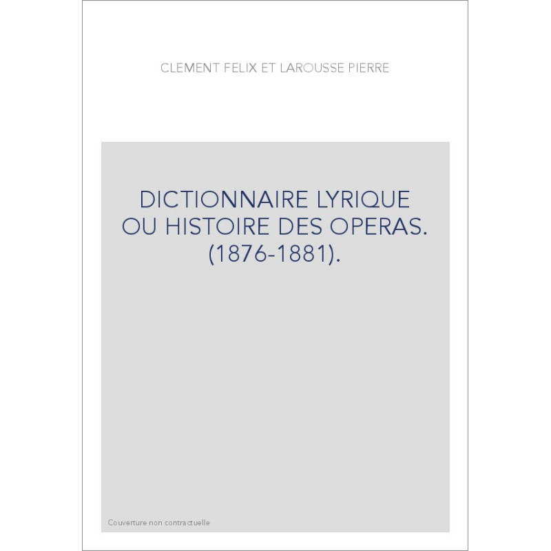 Premier dictionnaire dans le domaine des œuvres lyriques qui a paru en langue française, élaboré par Félix Clément, compositeur de musique et maître de chapelle honoraire de la Sorbonne et Pierre Larousse, auteur et éditeur du Grand Dictionnaire universel du XIXe siècle. Le Dictionnaire lyrique contient l'analyse et la nomenclature de tous les opéras et opéras-comiques représentés en France et à l'étranger depuis l'origine de ce genre d'ouvrages jusqu'en 1880. Il indique le titre de l'œuvre, l'année et le lieu de la première représentation, la trame du sujet, et surtout l'énumération des morceaux les plus saillants. Il cite le nom des artistes qui ont créé les rôles et, enfin, donne un compte rendu complet des principales œuvres lyriques qui s'articulent en cinq formes principales : I. L'Oratio ou Drame sacré. II. La Tragédie lyrique, qui a été la forme de l'opéra pendant le grand siècle littéraire de la France ; elle s'est appelée en Italie, jusqu'au commencement du XIXe siècle, Dramma per musica et depuis Opera seria. III. Le Drame lyrique, ou l'Opéra semi-seria, dans lequel l'auteur s'est affranchi de la coupe classique et a donné un plus libre essor à son inspiration, soit sérieuse, soit comique. IV. la Comédie mêlée d'ariettes ou opéras-comique, dont la forme équivalente en Italie est celle de l'Opéra buffa, avec cette différence que les récitatifs de l'Opéra buffa sont remplacés en France par un dialogue. V. L'Opérette bouffe, ou plutôt burlesque, appelée Farsa en Italie.