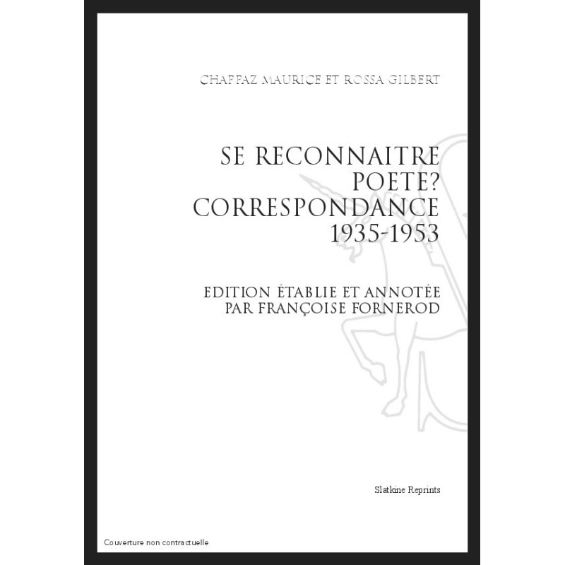 SE RECONNAITRE POETE? CORRESPONDANCE (1935-1953)