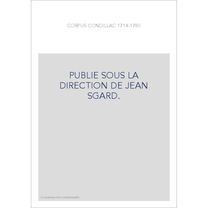 CORPUS CONDILLAC 1714-1780. PUBLIE SOUS LA DIRECTION DE JEAN SGARD.