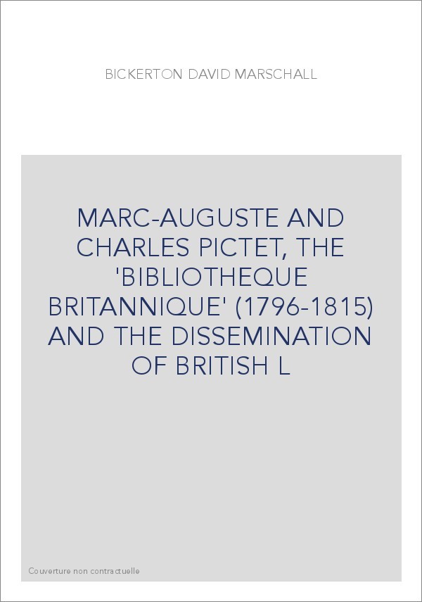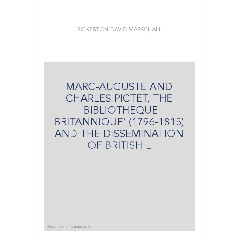 MARC-AUGUSTE AND CHARLES PICTET, THE 'BIBLIOTHEQUE BRITANNIQUE' (1796-1815) AND THE DISSEMINATION OF BRITISH