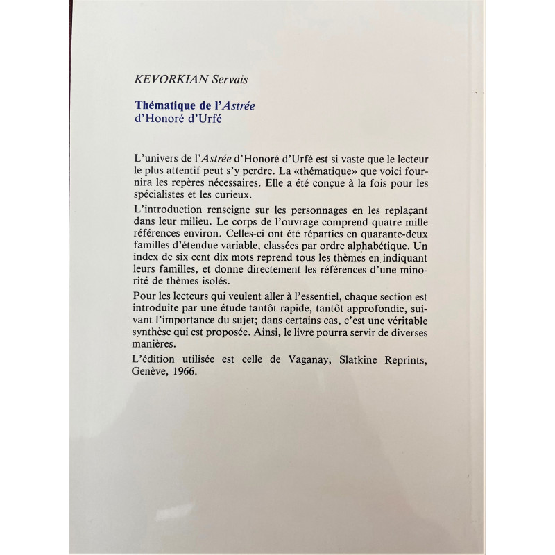 L'univers de L'Astrée d'Honoré d'Urfé est si vaste que le lecteur le plus attentif peut s'y perdre. La "thématique" que voici fournira les repères nécessaires. Elle a été conçue ç la fois pour les spécialistes et les curieux.