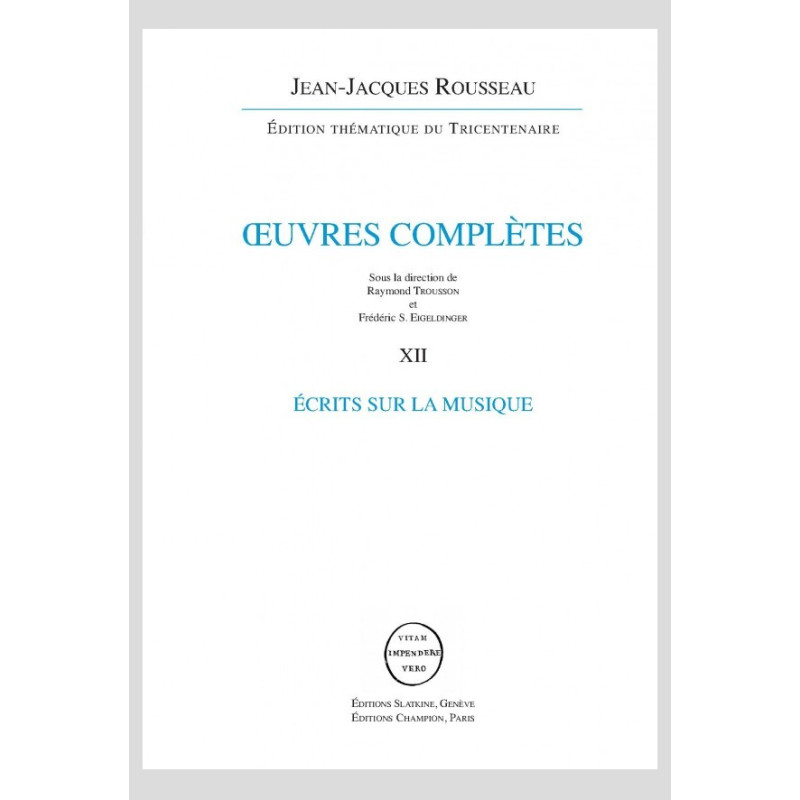 Volume 12 des Oeuvres complètes de Jean-Jacques Rousseau sous la direction de Raymond Trousson et Frédéric S. Eigeldinger