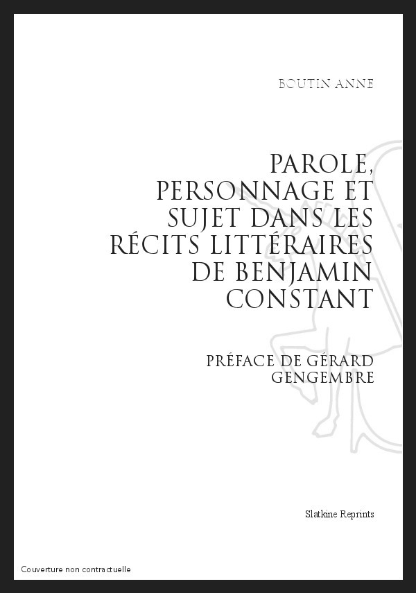 Même si Alison Fairlie, Tzvetan Todorov, Han Verhoeff et Simone Balayé ont reconnu l'importance de la parole dans les récits littéraires de Benjamin Constant ( Amélie et Germaine, Cécile, Ma vie et Adolphe), dans leurs commentaires ces critiques ont surtout mis en évidence les échecs et les malentendus inhérents à toute communication verbale. Au delà de ces constatations, il restait à montrer que les récits constantiens donnent à voir et à comprendre l'intérêt que cet écrivain nourrissait pour la parole, tout particulièrement pour la parole privée - celle qu'il a choisi de mettre en scène dans ces quatre œuvres, qui acquièrent, grâce à cette spécificité, une manière d'unité. Cette parole intime, aux antipodes de la parole publique, s'offre comme un champ d'investigation illimité tant le locuteur est alors impliqué dans sa pratique verbale. Les introspections des narrateurs-personnages constantiens font naître la peinture d'un sujet moderne, fragilisé dans sa vie personnelle et peu engagé dans la vie sociale, mais elles offrent surtout un vaste panorama des situations d'interlocution et présentent en creux les nombreuses ressources de la parole. Ces récits, qui accordent une attention tout à fait signifiante à l'écriture de la parole, mais échappent parfois à toute classification générique, parviennent à mimer les incertitudes de leur narrateur-personnage tout en révélant que c'est par la parole, originale et singulière, que le sujet s'individualise - expérience rendue souvent difficile à cause de la langue conventionnelle dont usent ceux que l'on rencontre dans les lieux de sociabilité, en ce XIXe siècle naissant.