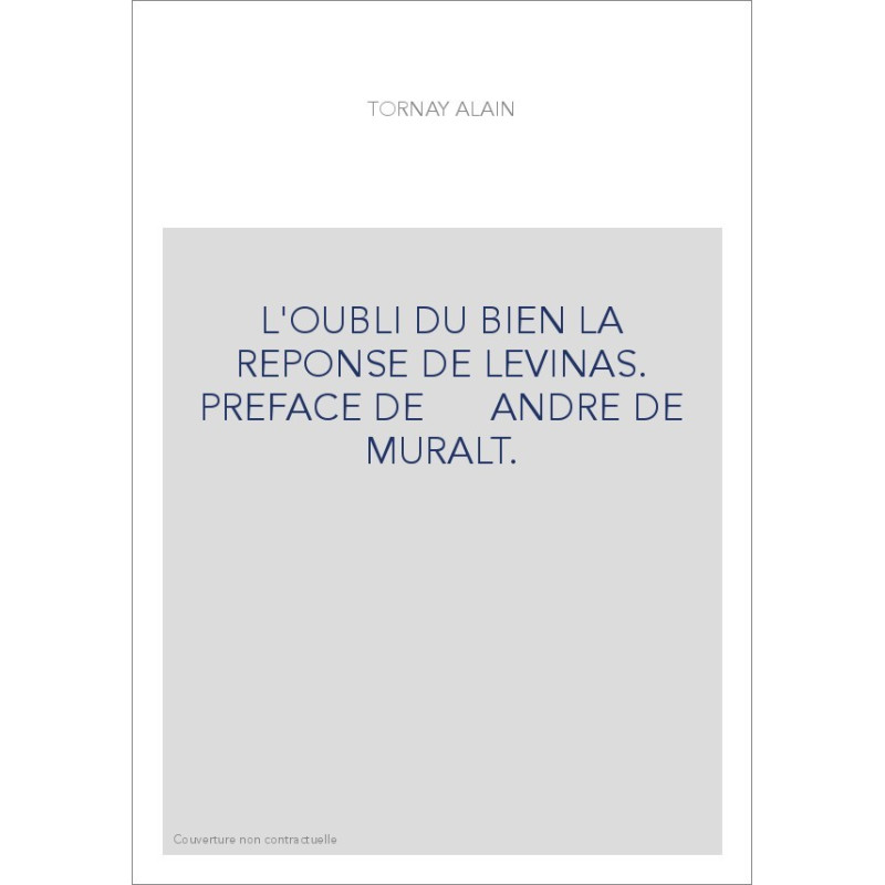 L'OUBLI DU BIEN LA REPONSE DE LEVINAS. PREFACE DE ANDRE DE MURALT.