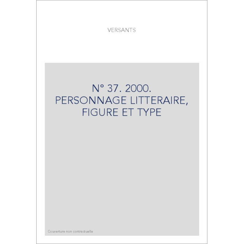VERSANTS 37. PERSONNAGE LITTERAIRE, FIGURE ET TYPE