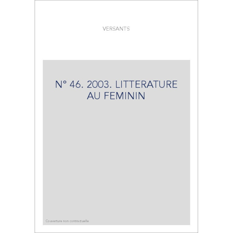 VERSANTS 46 2003 LITTéRATURE AU FéMININ