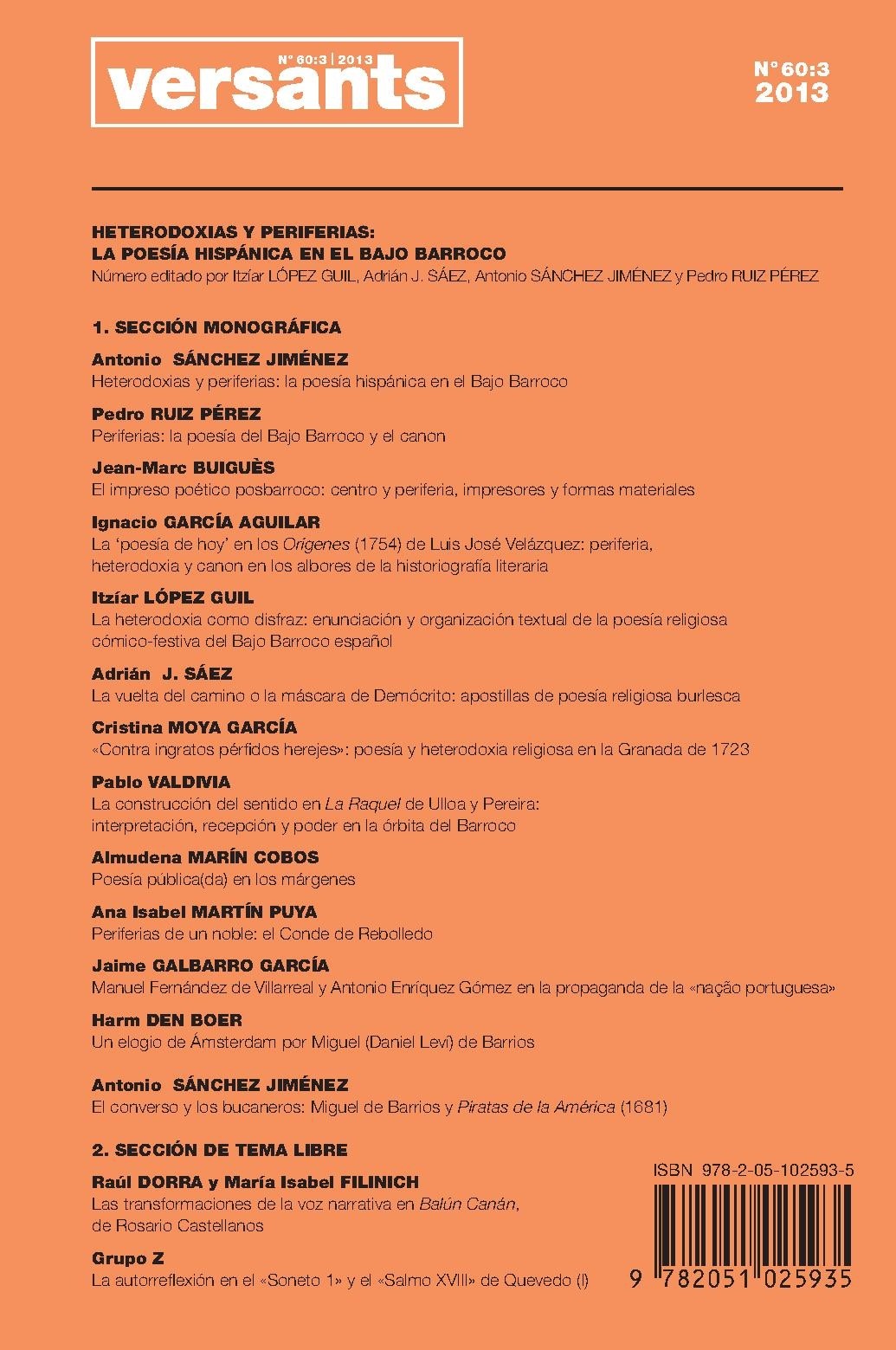 VERSANTS 60 FASCICULE ESPAGNOL HETERODOXIAS Y PERIFERIAS : LA POESÍA HISPÁNICA EN EL BAJO BARROCO