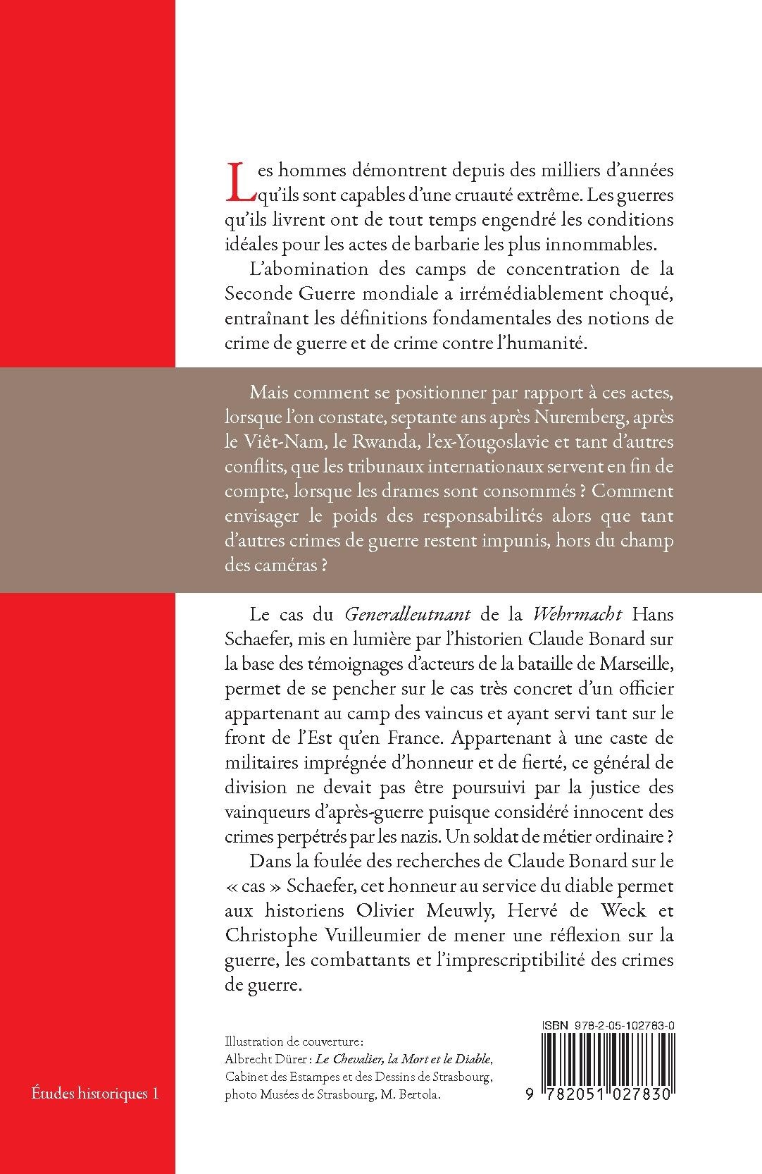 Dans la foulée des recherches de Claude Bonard sur le «cas » Schaefer, cet honneur au service du diable permet aux historiens Olivier Meuwly, Hervé de Weck et Christophe Vuilleumier de mener une réflexion sur la guerre, les combattants et l’imprescriptibilité des crimes de guerre.