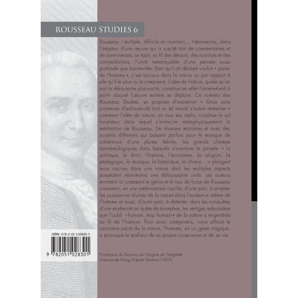 Rousseau : multiple, difficile et incertain… Néanmoins, dans l’ampleur d’une oeuvre qui a suscité tant de commentaires et de controverses, se tapit, au fil des détours, des nuances et des contradictions, l’unité remarquable d’une pensée aussi profonde que tourmentée. Bien qu’il ait déclaré vouloir « parler de l’homme », c’est toujours dans la nature ou par rapport à elle qu’il le situe ou le comprend. L’idée de Nature, quelle qu’en soit la déroutante plurivocité, constitue en effet l’arrière-fond à partir duquel l’oeuvre entière se déploie. Ce numéro des Rousseau Studies, se propose d’examiner – fût-ce sans promesse d’exhaustivité tant un tel travail s’avère immense – comment l’idée de nature, en tous ses replis, constitue le sol fondateur dans lequel s’enracine métaphysiquement la méditation de Rousseau. De diverses manières et avec des accents différents qui passent parfois pour le manque de cohérence d’une plume fébrile, les grands champs épistémologiques dans lesquels s’aventure la pensée – la politique, le droit, l’histoire, l’économie, la religion, la pédagogie, la musique, la botanique, la chimie… – plongent leurs racines dans une nature dont les multiples aspects possèdent néanmoins une éblouissante unité. Les auteurs montrent ici comment le génie et le tour de force de Rousseau consistent, en une ambivalence insolite, d’une part, à projeter les puissances divines de la nature dans l’existence même de l’homme et aussi, d’autre part, à détecter, dans les conquêtes d’une modernité en quête de triomphes, les vertiges redoutables que l’oubli « humain, trop humain » de la nature a engendrés au fil de l’histoire. Pour avoir compromis, voire effacé le caractère sacré de la nature, l’homme, en un geste tragique, a provoqué le malheur de sa propre conscience et de sa vie.