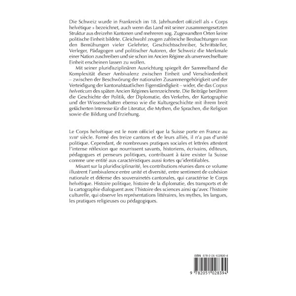 Mit seiner pluridisziplinären Ausrichtung spiegelt der Sammelband die Komplexität dieser Ambivalenz zwischen Einheit und Verschiedenheit – zwischen der Beschwörung der nationalen Zusammengehörigkeit und der Verteidigung der kantonalstaatlichen Eigenständigkeit – wider, die das Corpus helveticum des späten Ancien Régimes kennzeichnete. Die Beiträge berühren die Geschichte der Politik, der Diplomatie, des Verkehrs, der Kartographie und der Wissenschaften ebenso wie die Kulturgeschichte mit ihrem breit gefächerten Interesse für die Literatur, die Mythen, die Sprachen, die Religion sowie die Bildung und Erziehung.