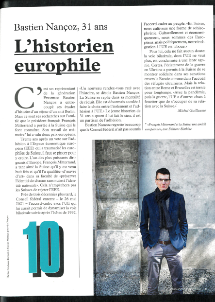 Quarante ans après son élection à l’Élysée le 10 mai 1981 et vingt-cinq ans après sa mort, cet ouvrage revient sur l’amitié étonnante que François Mitterrand a nouée avec la Suisse et ses dirigeants. Bastien Nançoz nous invite à redécouvrir la période d’espoir qui suit la chute du mur de Berlin, en analysant le discours européen tenu en Suisse par le président français. Malgré l’attention que le « passeur d’Europe » Mitterrand accorde au voisin helvétique et l’accueil favorable que la Suisse lui réserve, la Confédération manque son rendez-vous avec l’Europe le 6 décembre 1992. Cet échec ne fait pas perdre espoir au président français de voir un jour la Suisse prendre une part active au « grand dessein européen ».