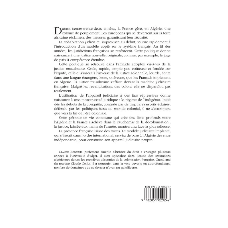 Claude Bontems, professeur émérite d’histoire du droit a enseigné plusieurs années à l’université d’Alger. Il s’est spécialisé dans l’étude des institutions algériennes durant les premières décennies de la colonisation française. Grand ami du regretté Claude Collot, il a poursuivi dans la voie ouverte en approfondissant nombre de domaines que ce dernier n’avait pu qu’effleurer.
