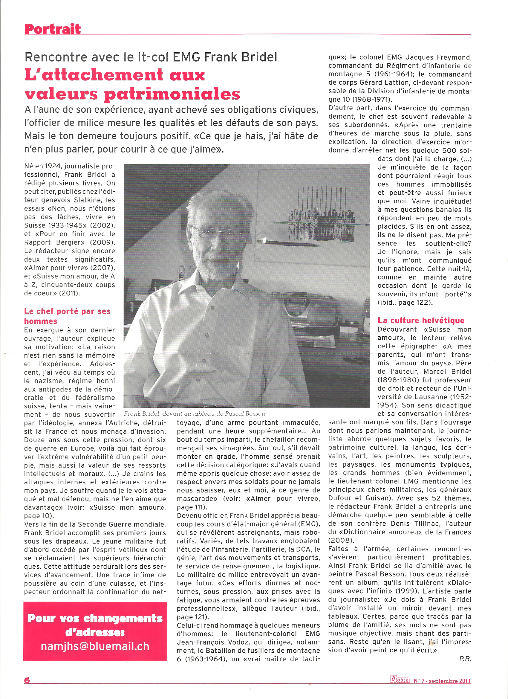 Peut-on aimer la Suisse au-delà des clichés sur les vaches, le chocolat et le " propre en ordre " ? Frank Bridel en est convaincu. Il l`a parcourue en tout sens et fouillé dans une vaste documentation pour choisir en toute indépendance ce qui le fait vibrer : - des sites, des monuments, des cantons et leurs peuples ; - des oeuvres et des vies d`artistes, d`écrivains et de chefs ; - des destins émouvants de femmes et d`hommes exceptionnels ; - des prouesses comme la saga heureusement inachevée des Piccard ; - des institutions, des traditions bien vivantes, des hauts faits et d`autres grandes pages d`histoire. Cette sélection, Frank Bridel la présente sous la forme de cinquante-deux brefs sujets groupés par ordre alphabétique. Ce livre n`est pas un guide de plus. C`est un chant d`amour que l`auteur destine non seulement à ses compatriotes, mais aussi aux étrangers qu`intéresse la Suisse. Frank Bridel a publié dix livres en vingt-cinq ans, dont quatre aux Éditions Slatkine, notamment Non, nous n`étions pas des lâches et Pour en finir avec le Rapport Bergier. Il a été rédacteur en chef de la Gazette de Lausanne après avoir travaillé comme correspondant : à Paris pour la Gazette, puis pour la Tribune de Genève ; à Berne pour ce journal et pour la Radio suisse romande. Il a été collaborateur à Entreprise romande et a dirigé à Bâle un bureau d`information pour l`industrie pharmaceutique.