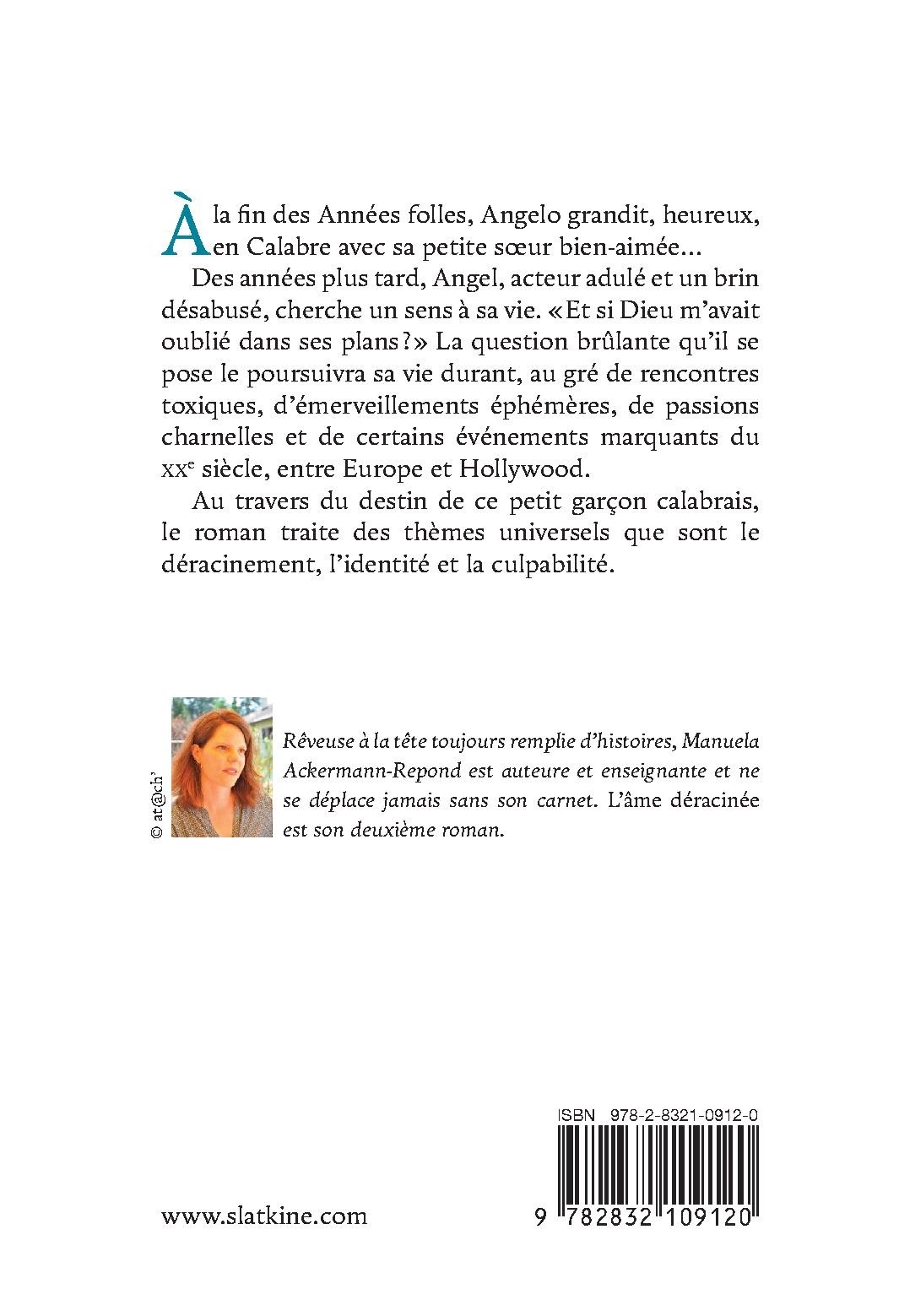 Rêveuse à la tête toujours remplie d’histoires, Manuela Ackermann-Repond est auteure et enseignante et ne se déplace jamais sans son carnet. L’âme déracinée est son deuxième roman.