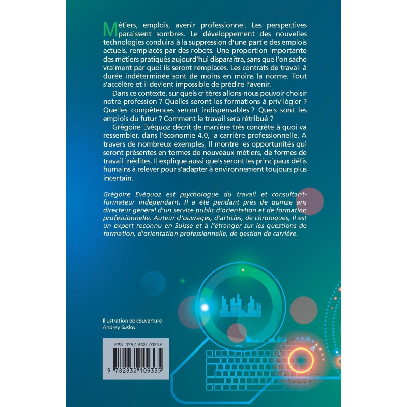 Grégoire Evéquoz décrit de manière très concrète à quoi va ressembler, dans l’économie 4.0, la carrière profess ionnelle. A travers de nombreux exemples, Il montre les opportunités qui seront présentes en termes de nouveaux métiers, de formes de travail inédites. Il explique aussi quels seront les principaux défis humains à relever pour s’adapter à un environnement toujours plus incertain.