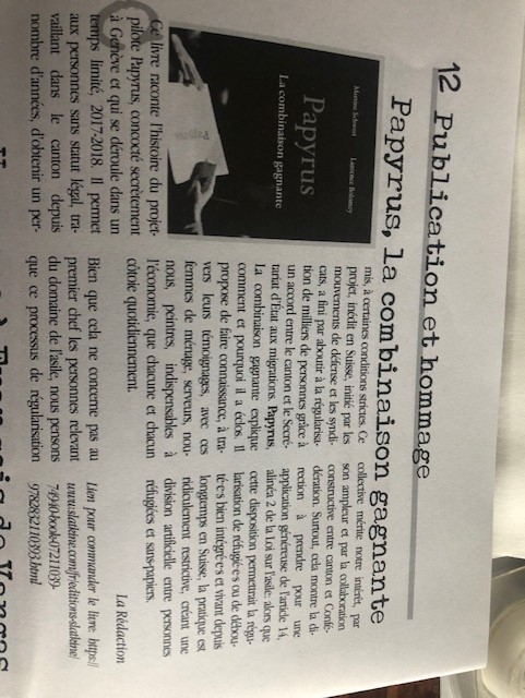 Le projet-pilote Papyrus, concocté secrètement, se déroule dans un temps limité, 2017-2018. Il propose aux personnes sans statut légal, travaillant à Genève depuis nombre d’années, d’obtenir un permis, à certaines conditions strictes.