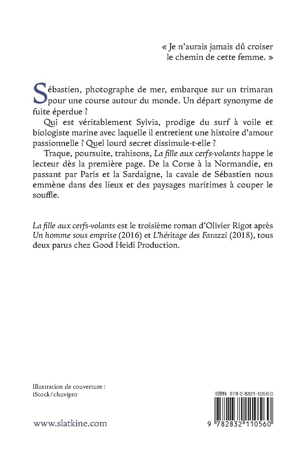 La fille aux cerfs-volants est le troisième roman d’Olivier Rigot après Un homme sous emprise (2016) et L’héritage des Farazzi (2018), tous deux parus chez Good Heidi Production.