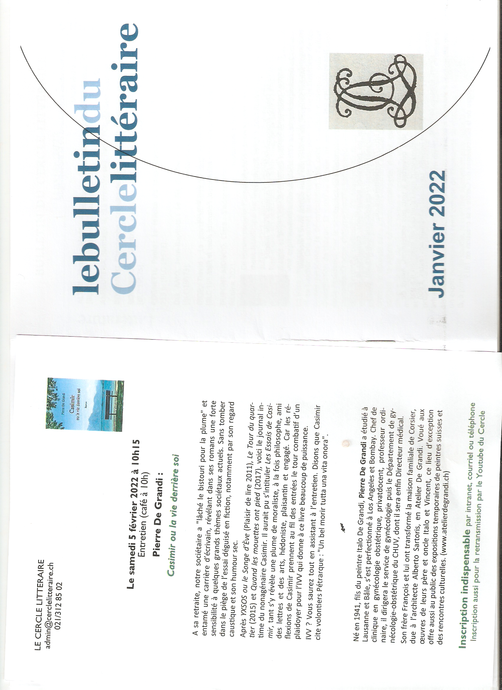 Après une carrière médicale, hospitalière et universitaire, Pierre De Grandi a publié trois romans, YXSOS ou le songe d’Ève (2011), Le tour du quartier (2015), Quand les mouettes ont pied (2017), ainsi qu’un récit de voyage illustré de gravures de Michael Reinhardt Une escapade aux Hébrides (2013).