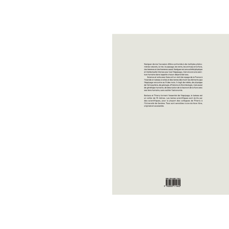 Science et voile avec Gaia unit un récit de voyage de la France à l’Islande en bateau à voile et des textes décrivant les éléments que l’équipage rencontre au fil des mois. Il s’agit de météo, de physique de l’atmosphère, de géologie, d’histoire et d’archéologie, mais aussi de génétique humaine, de description de la faune et de la flore avec ses liens humains, sans oublier l’astronomie.