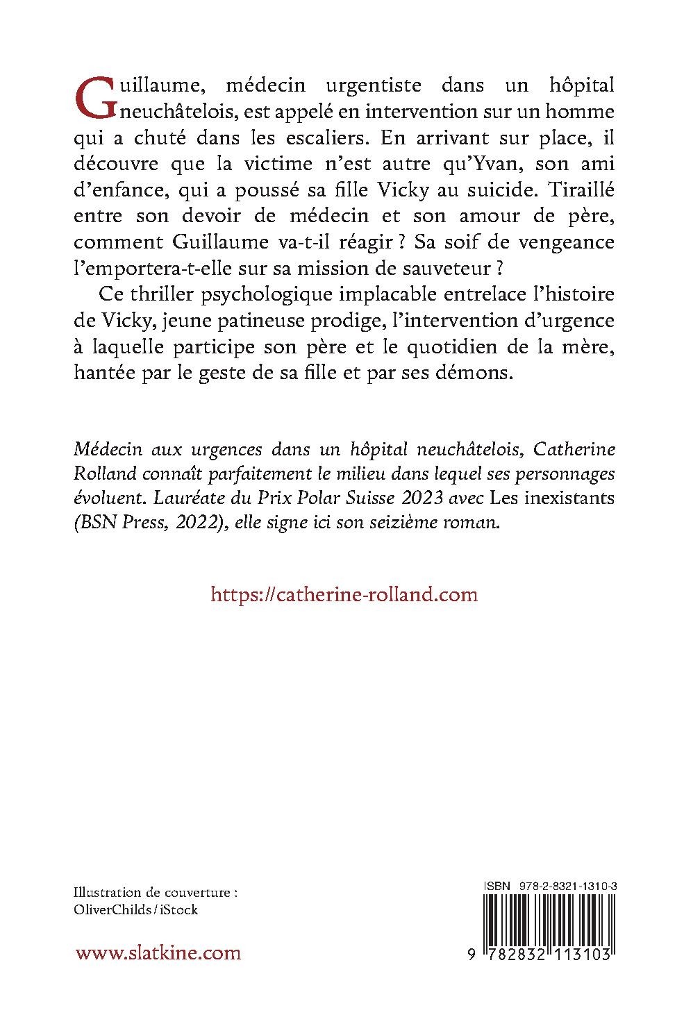 Médecin aux urgences dans un hôpital neuchâtelois, Catherine Rolland connaît parfaitement le milieu dans lequel ses personnages évoluent. Lauréate du Prix Polar Suisse 2023 avec Les inexistants (BSN Press, 2022), elle signe ici son seizième roman.