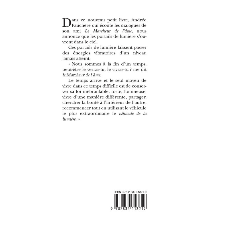 Dans ce nouveau petit livre, Andrée Fauchère qui écoute les dialogues de son ami Le Marcheur de l’âme, nous annonce que les portails de lumière s’ouvrent dans le ciel.