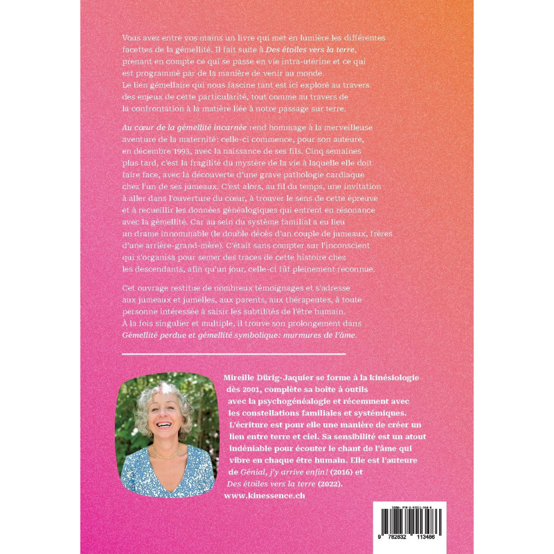 Vous avez entre vos mains un livre qui met en lumière les différentes facettes de la gémellité. Il fait suite à Des étoiles vers la terre, prenant en compte ce qui se passe en vie intra utérine et ce qui est programmé au travers de la manière de venir au monde. Le lien gémellaire qui nous fascine tant est ici exploré au travers des enjeux de cette particularité, tout comme au travers de la confrontation à la matière liée à notre passage sur terre.