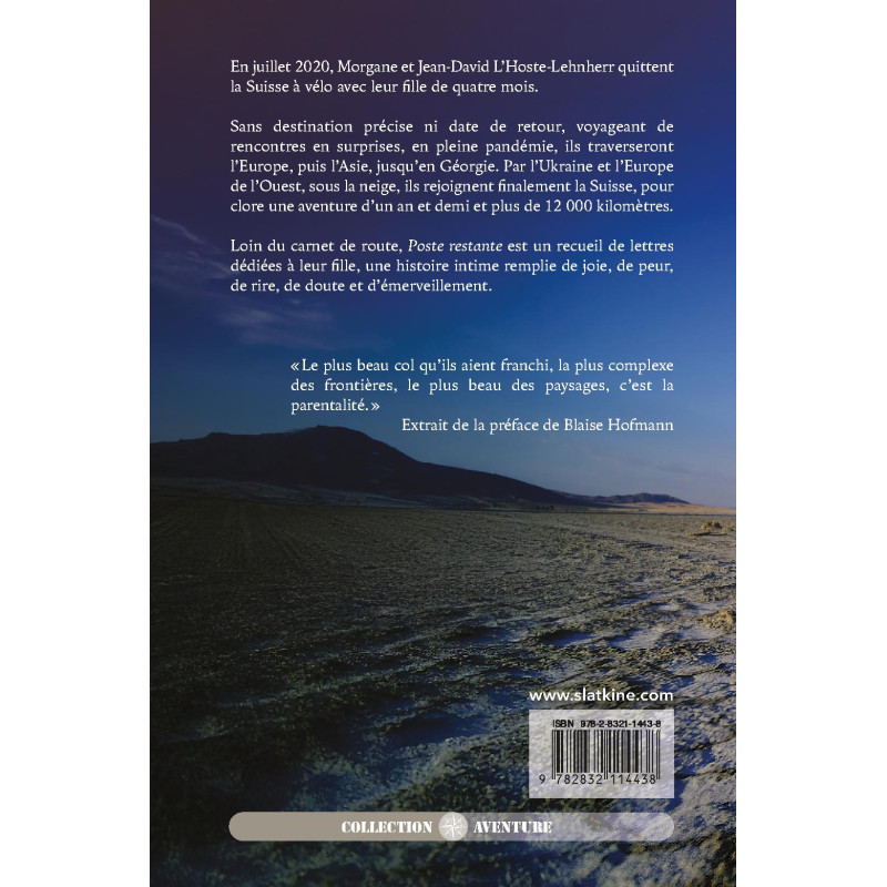 Loin du carnet de route, Poste restante est un recueil de lettres dédiées à leur fille, une histoire intime remplie de joie, de peur, de rire, de doute et d’émerveillement.