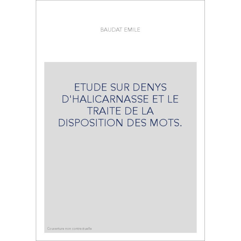 ETUDE SUR DENYS D'HALICARNASSE ET LE TRAITE DE LA DISPOSITION DES MOTS.