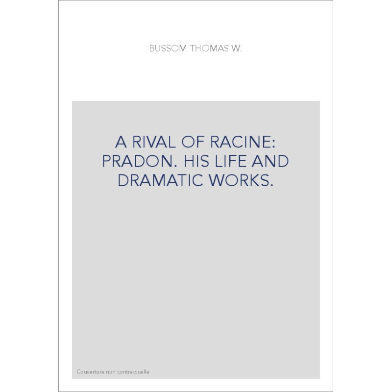 A RIVAL OF RACINE: PRADON. HIS LIFE AND DRAMATIC WORKS. View larger