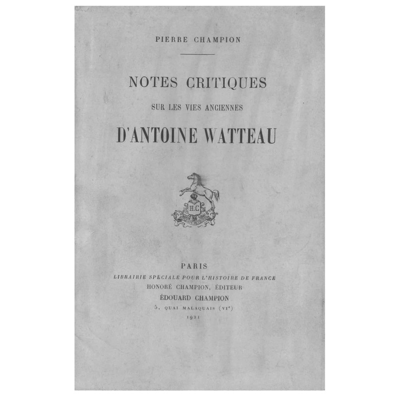 « Importante étude sur les 6 biographies anciennes d'Antoine Watteau, avec une appréciation de leurs valeurs respectives et de leur filiation.»