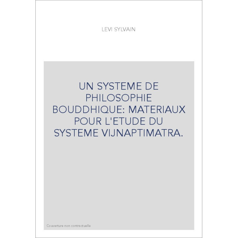 UN SYSTEME DE PHILOSOPHIE BOUDDHIQUE: MATERIAUX POUR L'ETUDE DU SYSTEME VIJNAPTIMATRA.