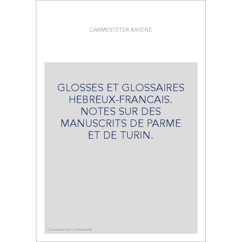 GLOSSES ET GLOSSAIRES HEBREUX-FRANCAIS. NOTES SUR DES MANUSCRITS DE PARME ET DE TURIN. View larger
