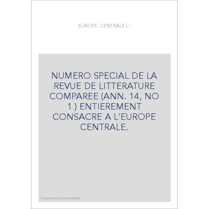 L'EUROPE CENTRALE. NUMERO SPECIAL DE LA REVUE DE LITTERATURE COMPAREE (ANNEE 1914, N°1) ENTIEREMENT