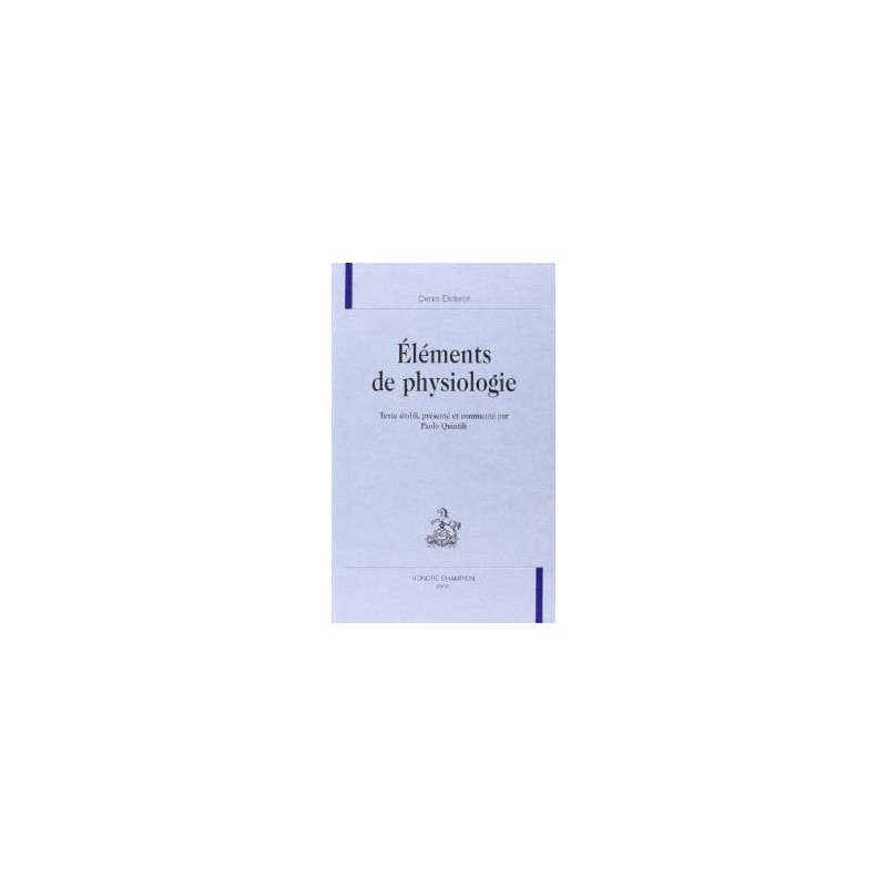 Les Éléments de Physiologie constituent le véritable testament intellectuel et spirituel de Diderot, auquel il travailla jusqu'à sa mort. Dans cet ouvrage, dont subsistent deux manuscrits - l'un de Saint-Pétersbourg, le plus ancien, l'autre de Paris, qu'on édite ici - Diderot se propose de mener à bien un projet ambitieux : une "histoire naturelle et expérimentale de l'homme", où la "condition humaine", dans ses aspects les plus complexes, physiques et moraux, est expliquée par la médecine et non par la métaphysique. Tout en demeurant fidèle à la tradition matérialiste des philosophes anciens, Diderot place sa confiance dans le progrès des sciences expérimentales et biologiques. Si philosopher est un art, à la fois une pratique et une théorie du bien vivre, la leçon des Éléments est une leçon de sagesse, visant au bonheur de l'espèce humaine. La recherche de Diderot est celle des fondements naturels de la morale qui place cet ouvrage - peu connu ou méconnu jusqu'à l'époque actuelle - au sommet des textes de réflexion scientifique et philosophique au tournant des Lumières, dans la ligne des grandes synthèses de la fin du XVIIIe et du début du XIXe siècle (Lamarck, Cuvier, Magendie, etc.). L'excipit épicurien-stoïcien, qui clôt l'ouvrage, lui donne son ton incomparable : "Il n'y a qu'une vertu, la justice ; qu'un devoir, de se rendre heureux ; qu'un corollaire, de ne pas se surfaire la vie et de ne pas craindre la mort".