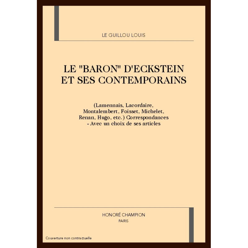 Ferdinand Eckstein est un des grands "oubliés" du XIXe siècle. Pourtant, le "baron Bouddha" comme on le surnommait, a été un des rares à participer pleinement à la renaissance orientale du siècle, aussi importante peut-être par ses conséquences - religieuses en particulier - que la renaissance antique du XVIe. Fondateur du Catholique (1825-1829, 16 vol.), une des meilleures revues du l'époque, il fut l'ami et le correspondant des gloires du XIXe siècle, Lamennais, Lacordaire, Montalembert, Hugo, Renan, etc.