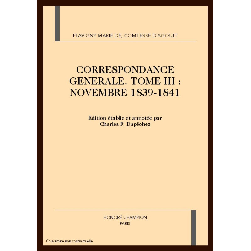 CORRESPONDANCE GÉNÉRALE, TOME III : NOVEMBRE 1839-1841