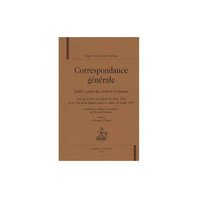Cette correspondance constitue un témoignage irremplaçable sur la vie intellectuelle autour du philosophe Dom Léger-Marie Deschamps et de son protecteur, disciple et ami, le marquis Marc-René de Voyer d`Argenson. Elle comporte une somme, presque entièrement inédite, de lettres, de mémoires, et d`écrits d`une grande diversité; elle offre aux chercheurs, comme à tous les curieux du passé,une source documentaire d`une exceptionnelle qualité, qui permet non seulement de mieux connaître la vie et la pensée de Léger-Marie Deschamps, mais aussi de comprendre comment celui-ci occupe une place singulière parmi les philosophes des Lumières, avec lesquels il entretenait des relations épistolaires suivies. Cette Correspondance générale de l`Académie des Ormes exprime non seulement l`intensité de la vie intellectuelle, philosophique, artistique et littéraire au siècle des Lumières, jusque dans les provinces, mais également celle de la vie politique, sociale et économique de cette époque, qui est le véritable creuset de la nôtre.